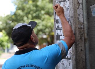 Maringá realiza força-tarefa para retirar cartazes colados em locais públicos