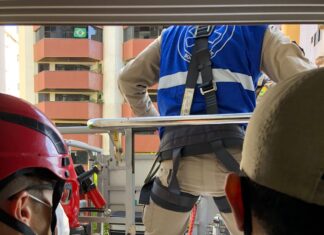Uma mulher de 86 anos de idade precisou ser resgatada por equipes do Corpo de Bombeiros, por meio de uma plataforma de salvamento, após...
