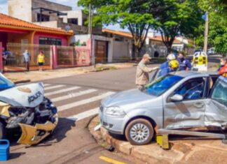Acidente de trânsito envolvendo viatura da PM é registrado em Maringá