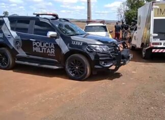 Um homem foi encontrado morto, alvejado com vários disparos de arma de fogo, na estrada Miosótis, no final da avenida Kakogawa, em Maringá.