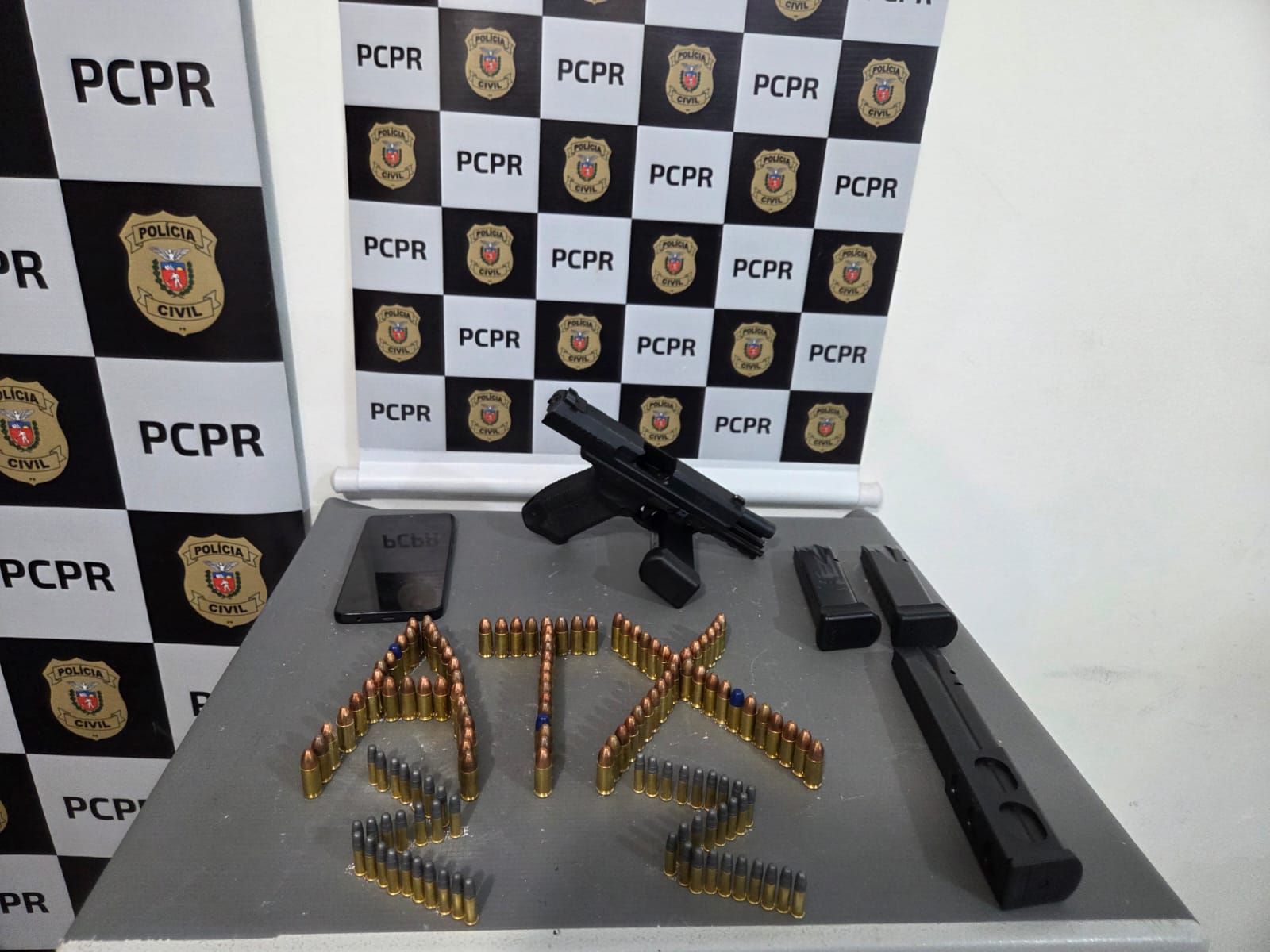 Durante a ação, os policiais localizaram com o investigado uma pistola calibre 9 mm, quatro carregadores e farta quantidade de munição. Um dos carregadores apreendidos é do tipo alongado, com alta capacidade de disparos.