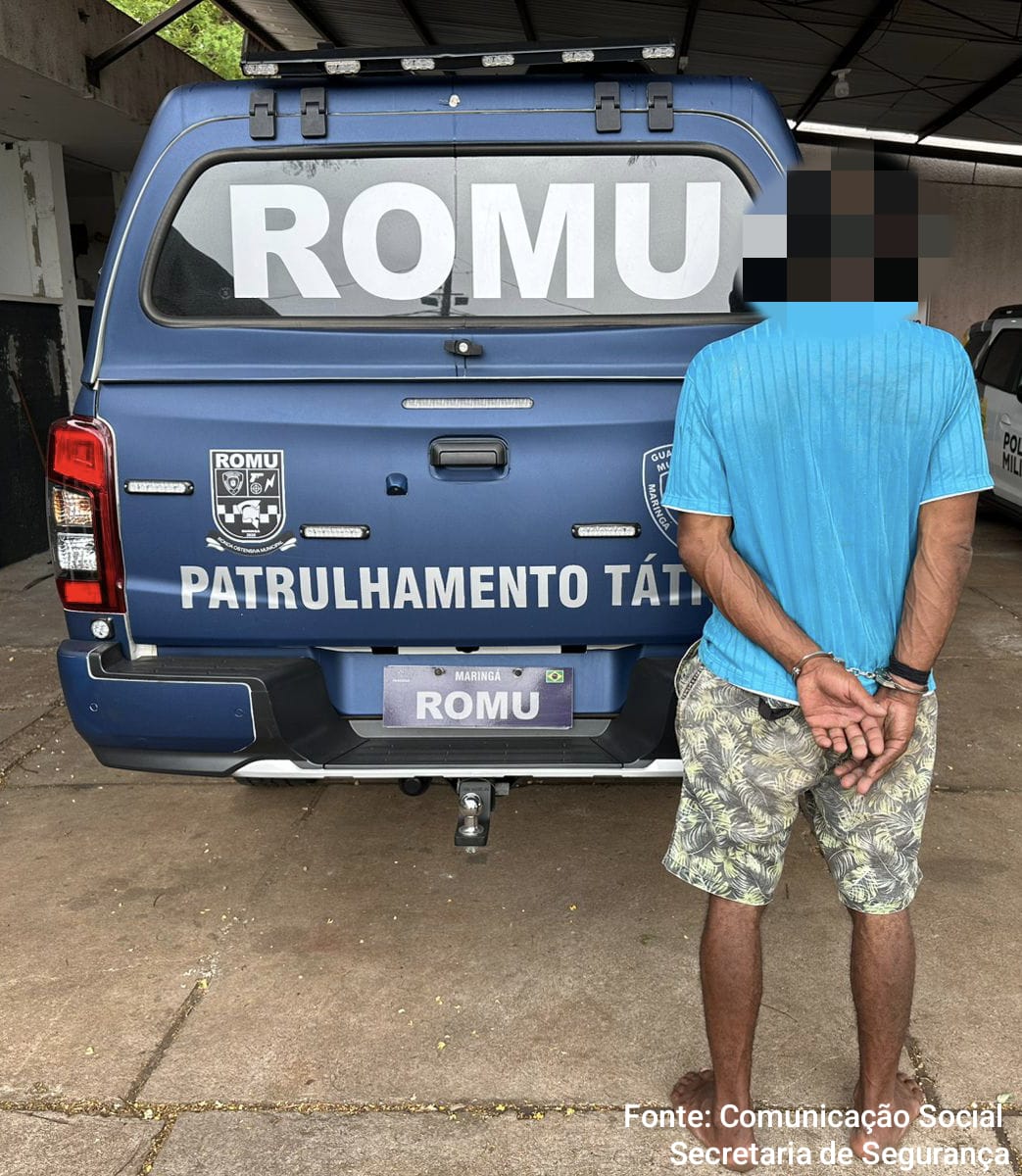 Na tarde desta terça-feira (30), a equipe da Ronda Ostensiva Municipal (ROMU) da Guarda Civil de Maringá prendeu um foragido da Justiça durante patrulhamento preventivo no Conjunto Requião.
