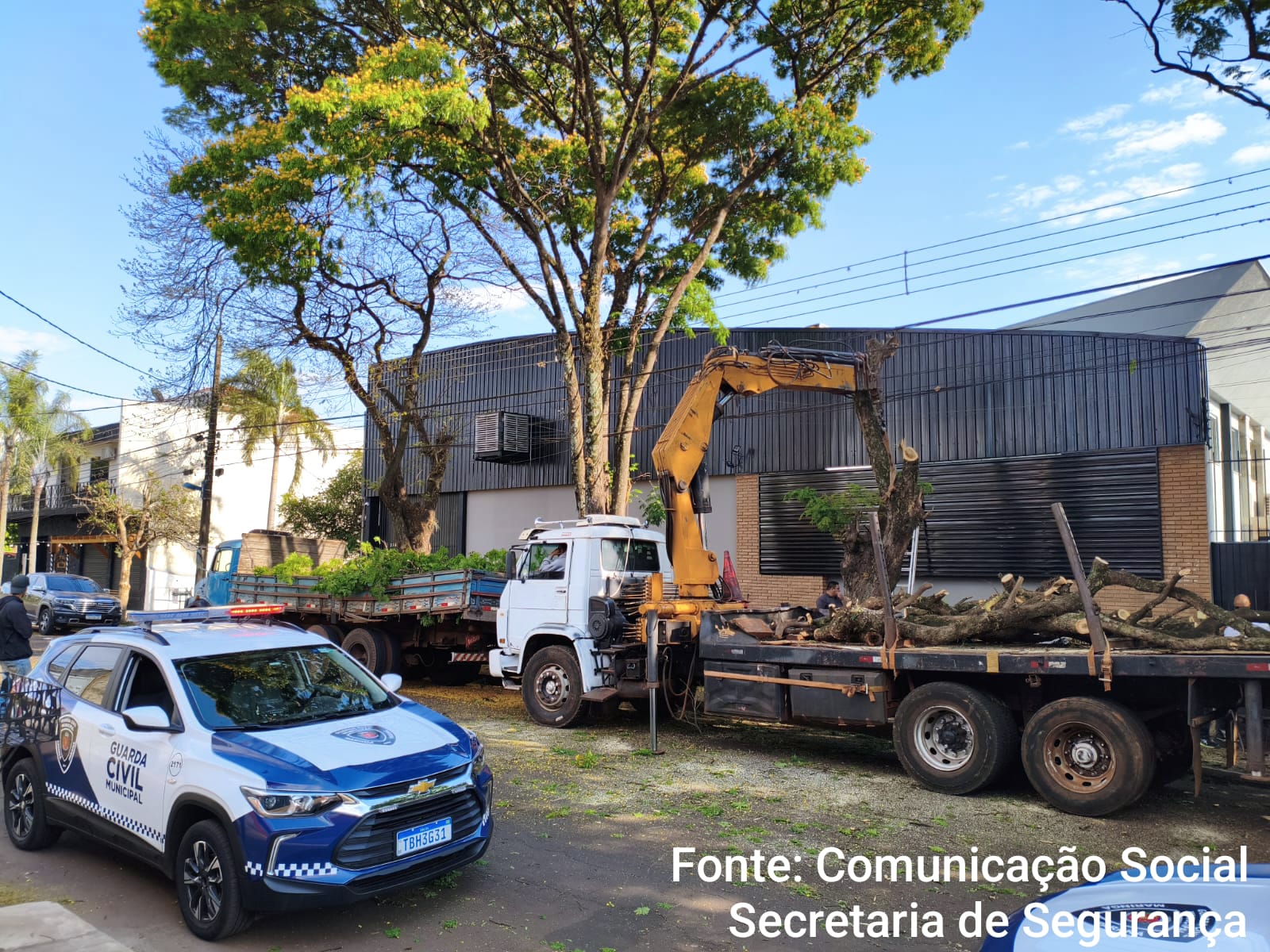 De acordo com as informações, os suspeitos estavam cortando árvores de forma irregular na Zona 6 da cidade. Ao chegar ao local, a equipe flagrou a dupla em plena ação. Questionados, os homens alegaram que trabalhavam para uma empresa terceirizada e que possuíam autorização para realizar o corte, porém não apresentaram nenhum documento que comprovasse a legalidade do serviço.