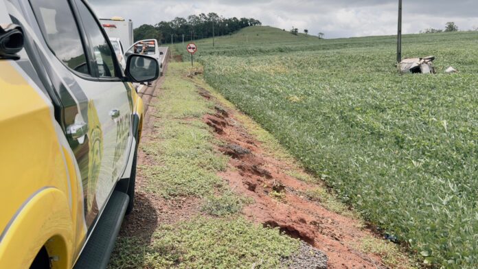 Ao chegarem no local, os policiais encontraram o veículo – um GM Astra, com placas de São Paulo (SP) – capotado em meia a uma plantação de soja às margens da rodovia.