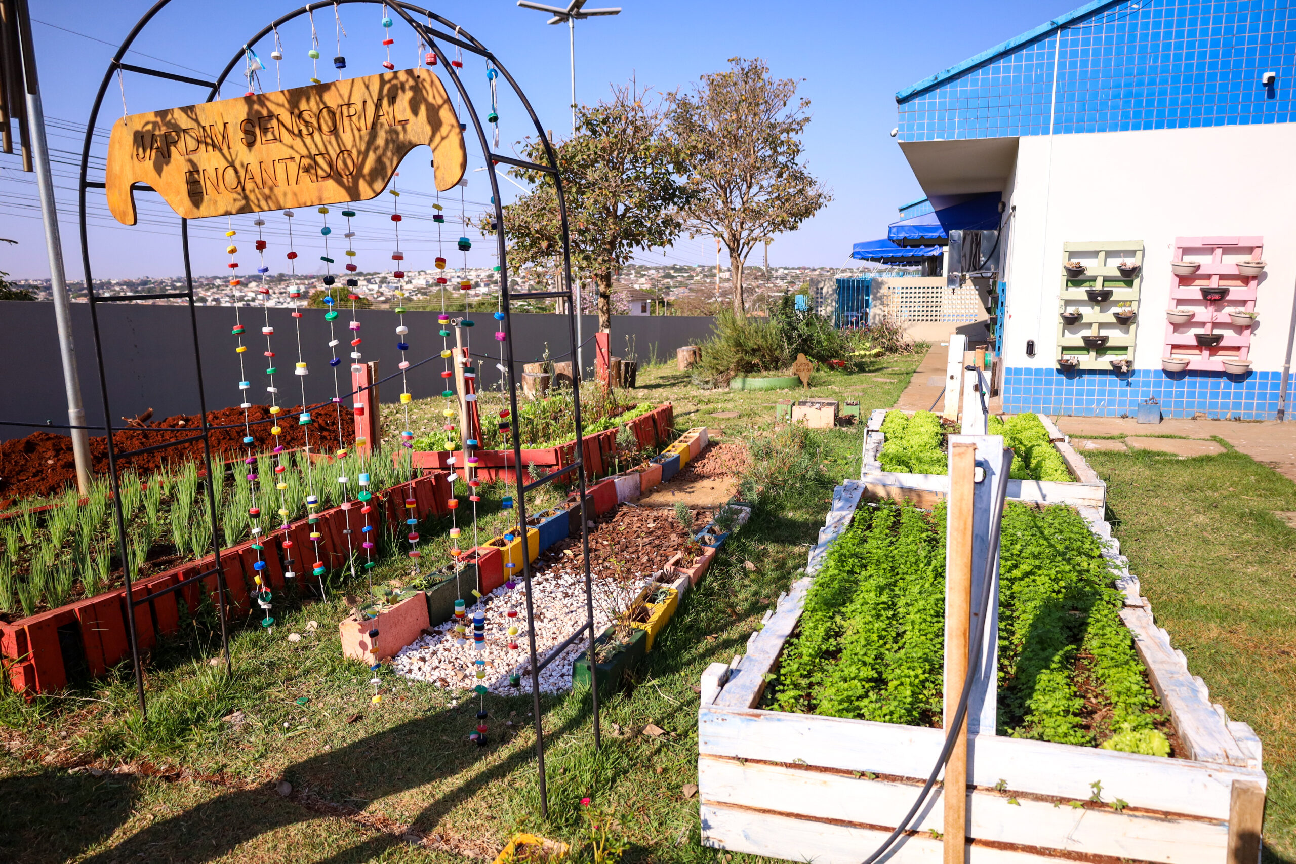 De forma integrada com a horta, o Cmei Zilda Arns também reúne um jardim sensorial, com plantas e objetos que estimulam os cinco sentidos: visão, audição, olfato, paladar e tato. “O jardim sensorial, de forma conectada com a horta, tem sido muito importante para o desenvolvimento cognitivo e sensorial das nossas crianças, além de incentivar e despertar nas crianças a importância do cuidado com o espaço do Cmei”, afirma a diretora do Cmei Zilda Arns, Susana Barbosa.
