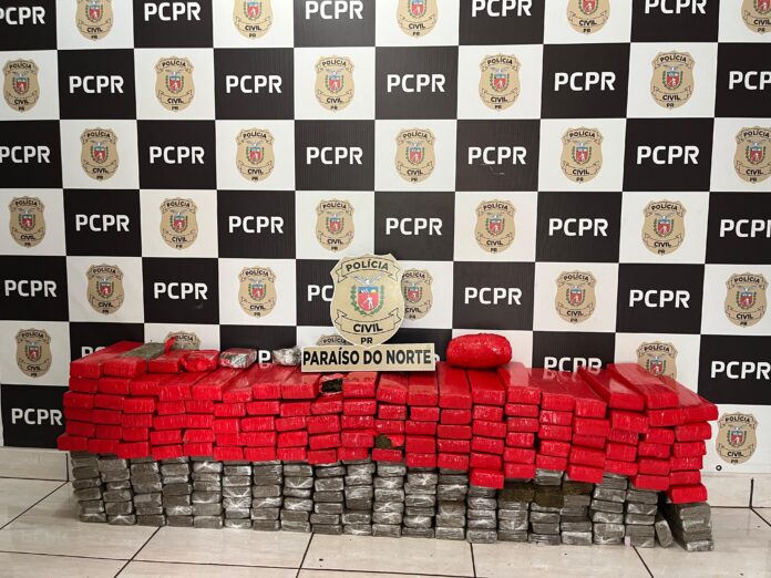 A Polícia Civil do Paraná (PCPR) aprendeu 172,1 quilos de maconha e prendeu um homem, de 30 anos, em flagrante pelo crime de tráfico de drogas. A ação aconteceu nesta quinta-feira (13) em Paraíso do Norte, no Noroeste do Estado.