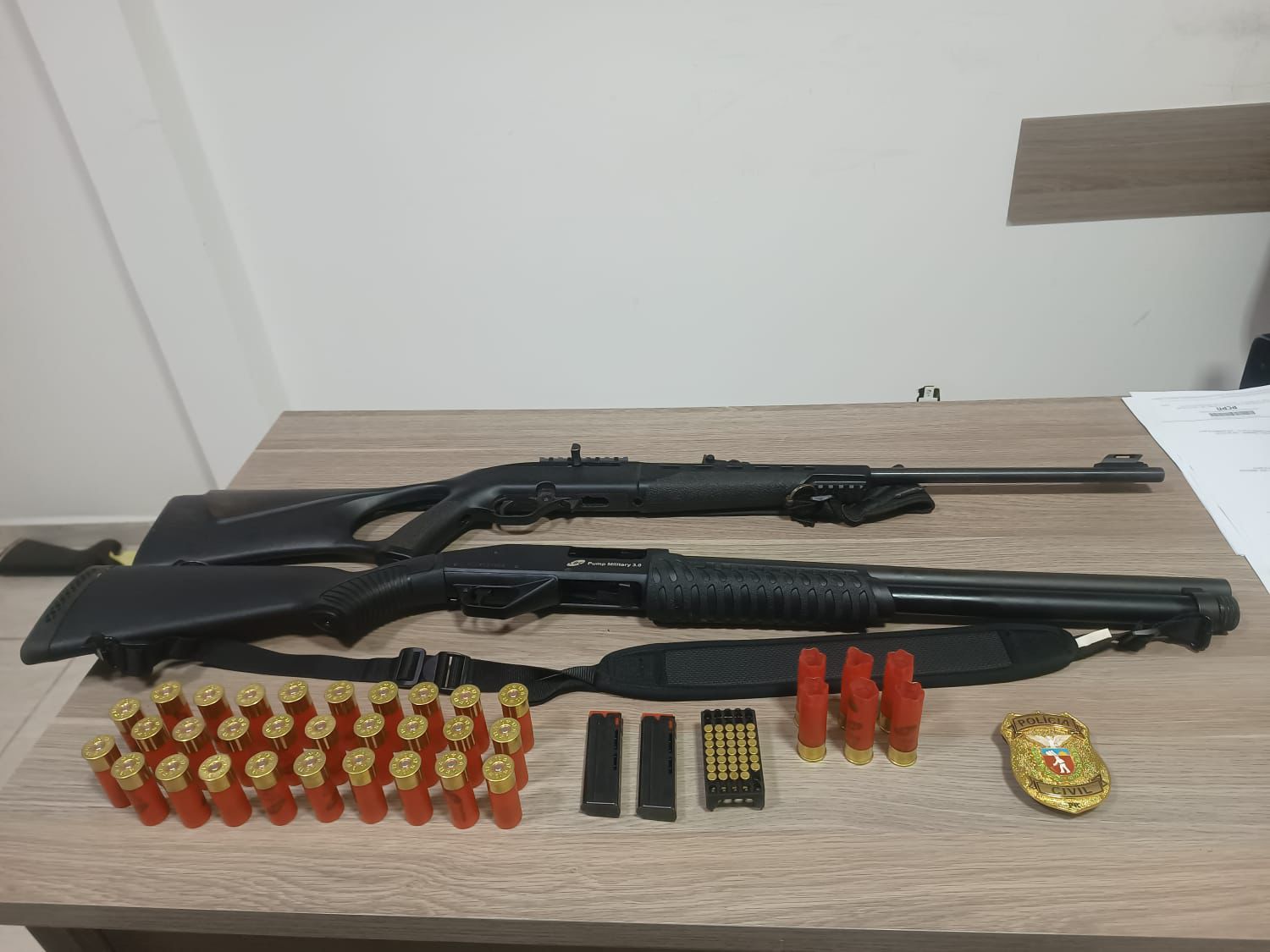 “No cumprimento dos mandados também foram encontradas duas armas de fogo e diversas munições na residência do indivíduo, entretanto, as armas estavam registradas, mas ainda assim ficaram apreendidas”, explica.