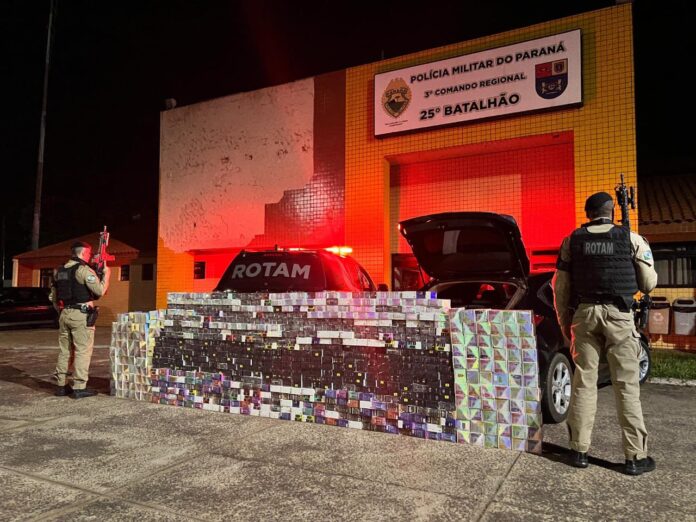 Uma ação de patrulhamento da ROTAM resultou na apreensão de uma grande carga de cigarros eletrônicos contrabandeados no final da tarde desta terça-feira, no centro de Cafezal do Sul. O valor estimado do material apreendido é de R$ 500 mil.