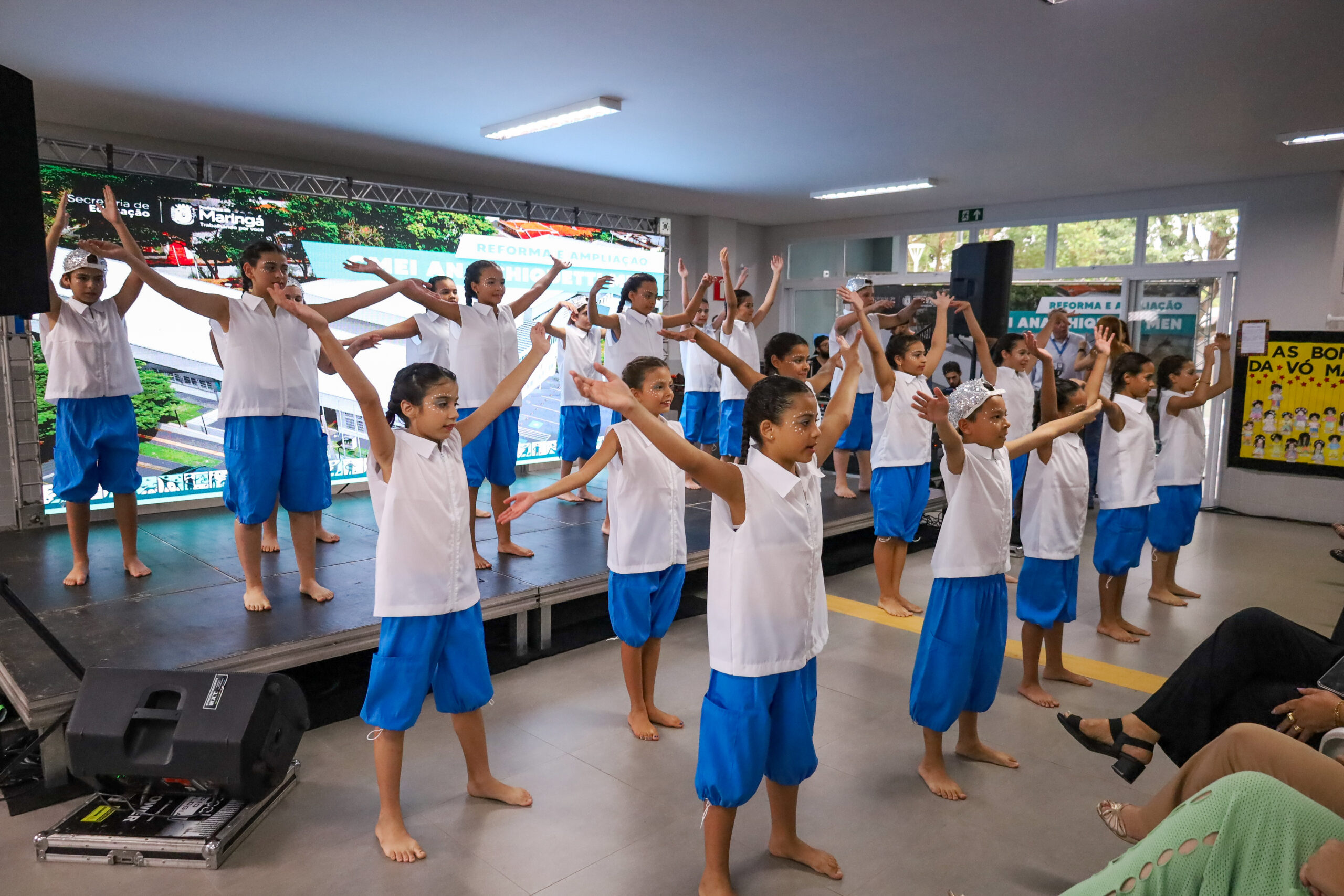 A Prefeitura de Maringá, por meio das secretarias de Educação e Obras Públicas, entregou nesta segunda-feira, 24, o novo Centro Municipal de Educação Infantil (Cmei) Ana Chiquetti Men, no Parque das Grevíleas II. O antigo prédio foi demolido para a construção da nova unidade, que agora tem mais de 3.256,65 m² de área construída, aumento de 174% em relação aos 1.185,40 m² anteriores. Com a estrutura moderna e totalmente acessível, a capacidade de atendimento foi ampliada para 375 alunos, resultando na criação de 175 novas vagas.