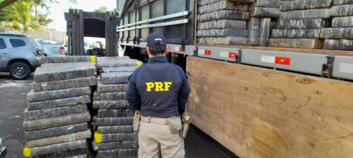 A PRF apreendeu, na manhã desta sexta-feira, 28, uma carreta carregada com 5.114 kg de maconha em Maringá.