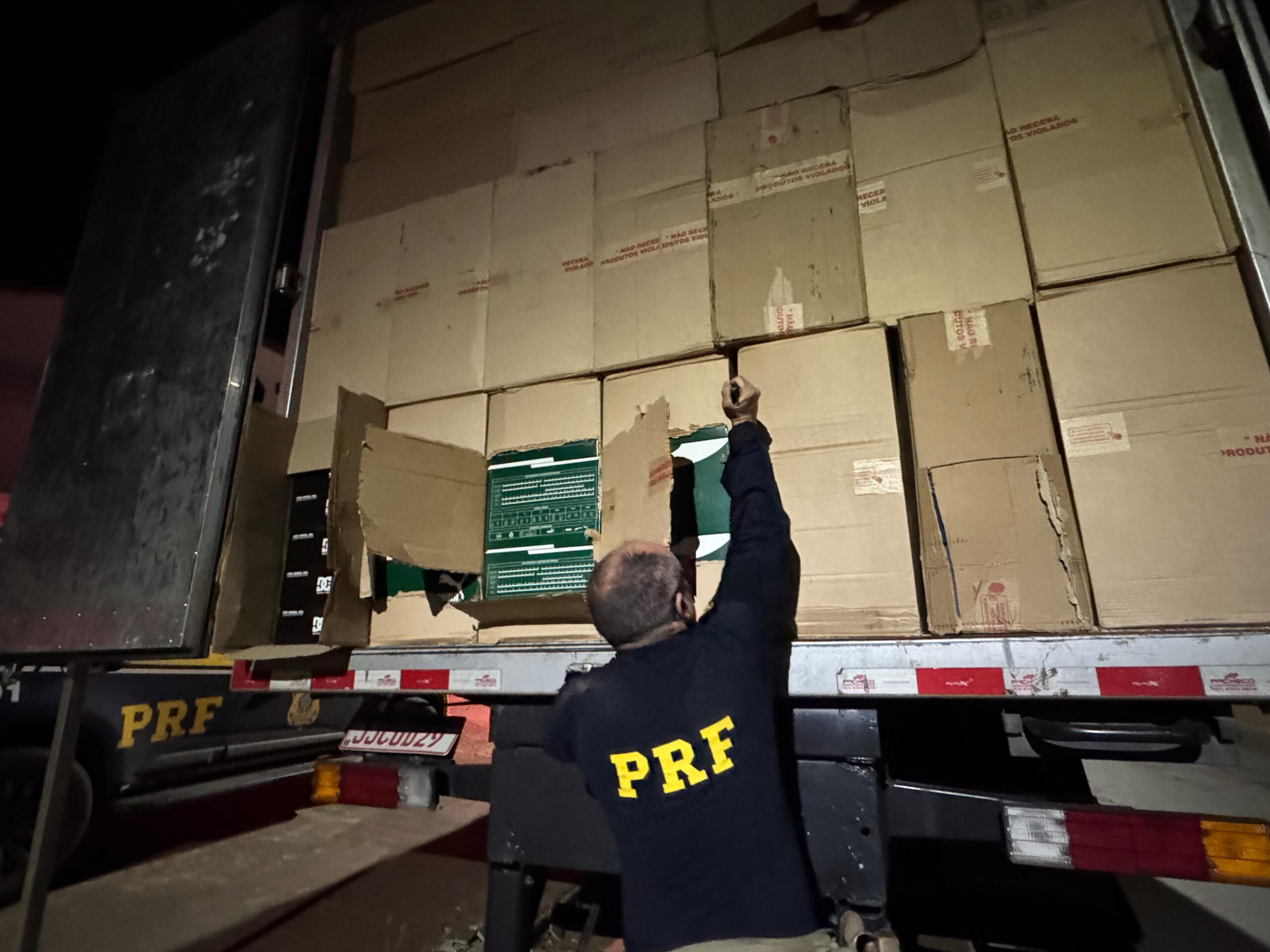 PRF apreende em Maringá dois caminhões baú com calçados falsificados