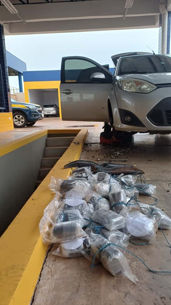 Ao aprofundar a inspeção ao veículo, a equipe identificou compartimentos ocultos na caixas de ar, dos dois lados, e ainda sob os paralamas dianteiros, de onde foram retirados 48 invólucros contendo substância análoga a Haxixe (substância derivada da maconha), totalizando 20,67 kg da droga.